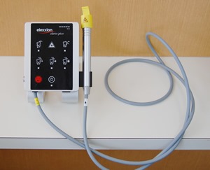 Claros PICO(elexxion)はLEDレーザーの照射器で、レーザーメス、LLLT(LOW REACTIVE LEVEL OF LASER THERAPY)で疼痛緩和、治癒促進を図ります。